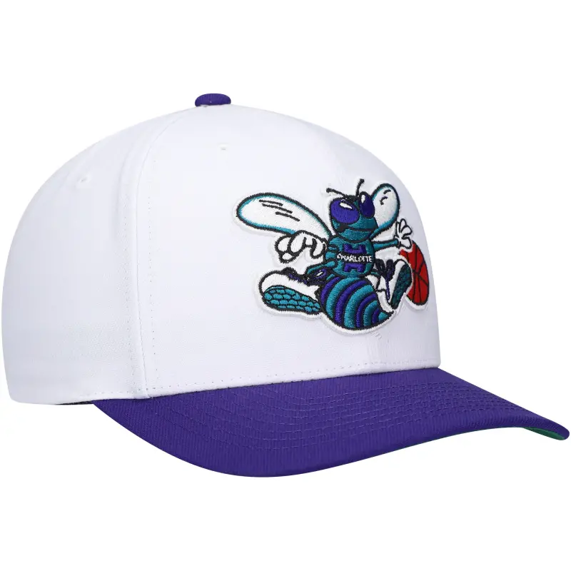 Men’s Charlotte Hornets Mitchell & Ness White/Purple Hardwood Classics Core 2-Tone 2.0 Pro Snapback Hat