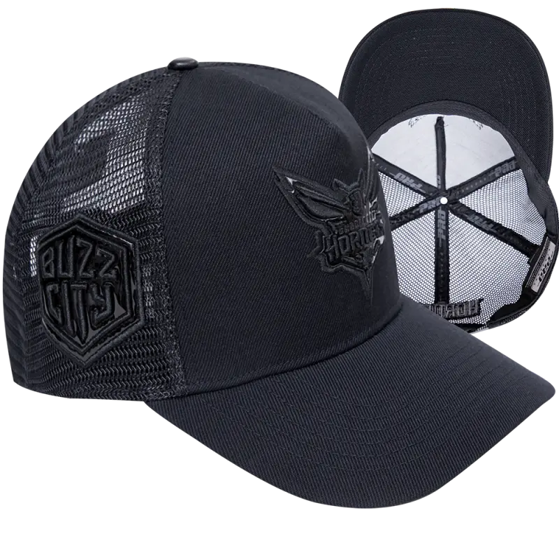NBA CHARLOTTE HORNETS BLACK OUT CLASSIC PINCH FRONT TRUCKER (BLACK)