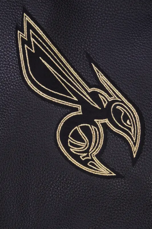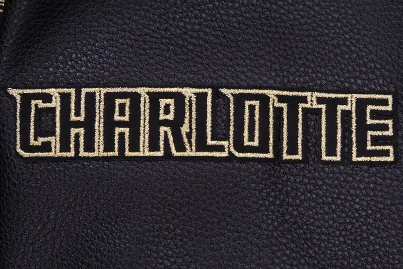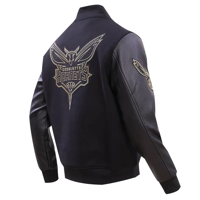NBA CHARLOTTE HORNETS BLACK \u0026 GOLD MEN’S WOOL VARSITY JACKET (JET BLACK)