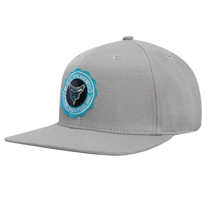 NBA CHARLOTTE HORNETS CREST EMBLEM WOOL SNAPBACK HAT (GRAY)