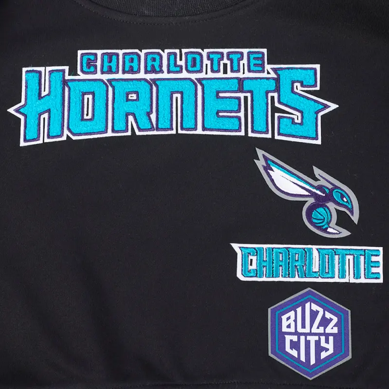 Home / Shop / Kids / NBA CHARLOTTE HORNETS RETRO CLASSIC BIG GIRLS RIB FLEECE CREWNECK (BLACK)
