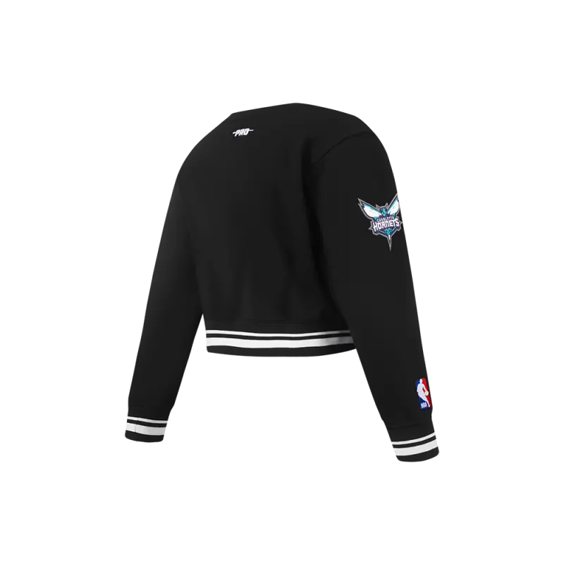 NBA CHARLOTTE HORNETS RETRO CLASSIC LITTLE GIRLS RIB FLEECE CREWNECK (BLACK)
