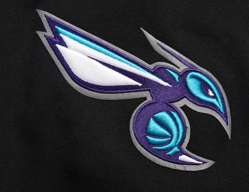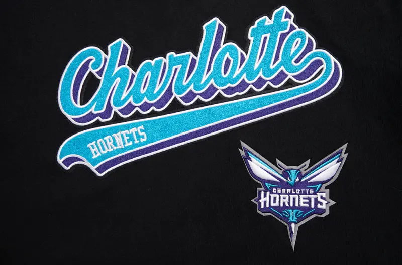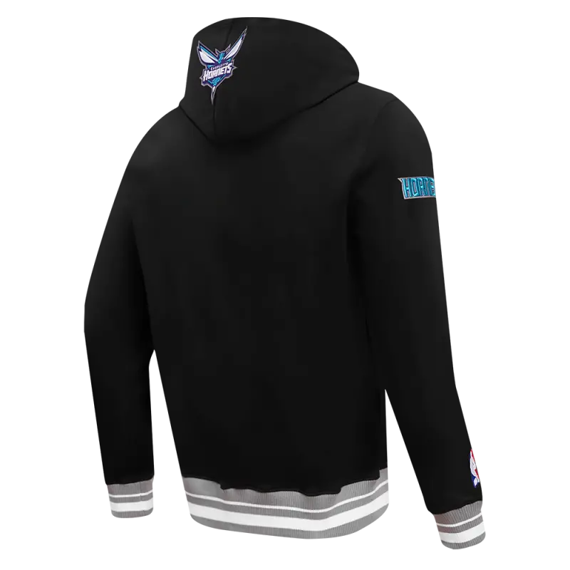 NBA CHARLOTTE HORNETS SCRIPT TAIL MEN’S RIB FLEECE PULLOVER HOODIE (BLACK\/GRAY)