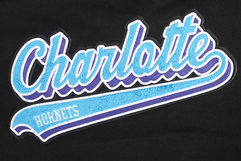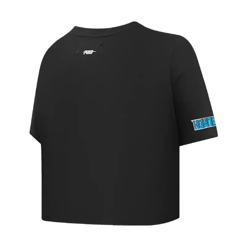 NBA CHARLOTTE HORNETS SCRIPT TAIL WOMEN’S SINGLE JERSEY BOXY TEE (BLACK)